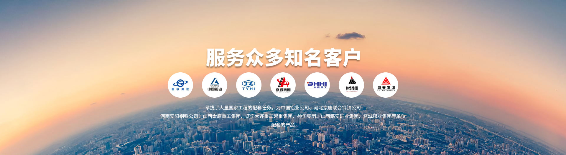 公司近年來承攬了大量國家工程的配套任務(wù)。為中國鋁業(yè)公司、河北京唐聯(lián)合鋼鐵公司、河南安陽鋼鐵公司、山西太原重工集團、遼寧大連重工·起重集團、神華集團、山西潞安礦業(yè)集團、晉城煤業(yè)集團等單位配套的產(chǎn)品